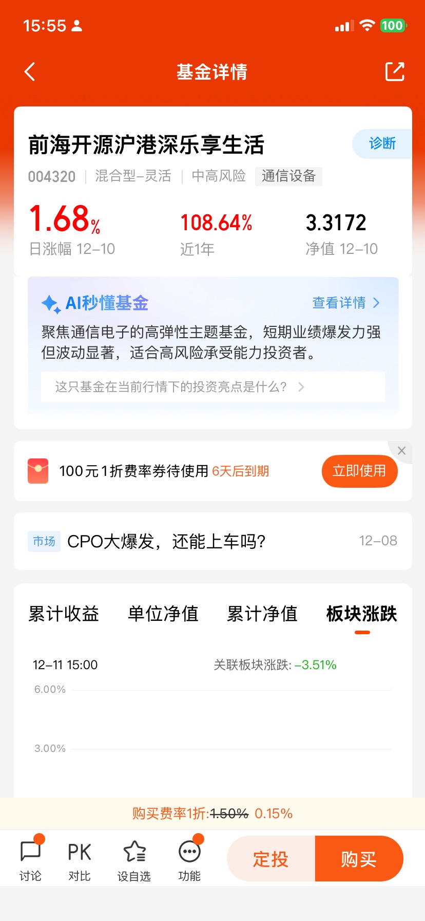 我看好CPO投资机遇,这几天打算开启定投$前海开源沪港深乐享生活$,这只基金最近