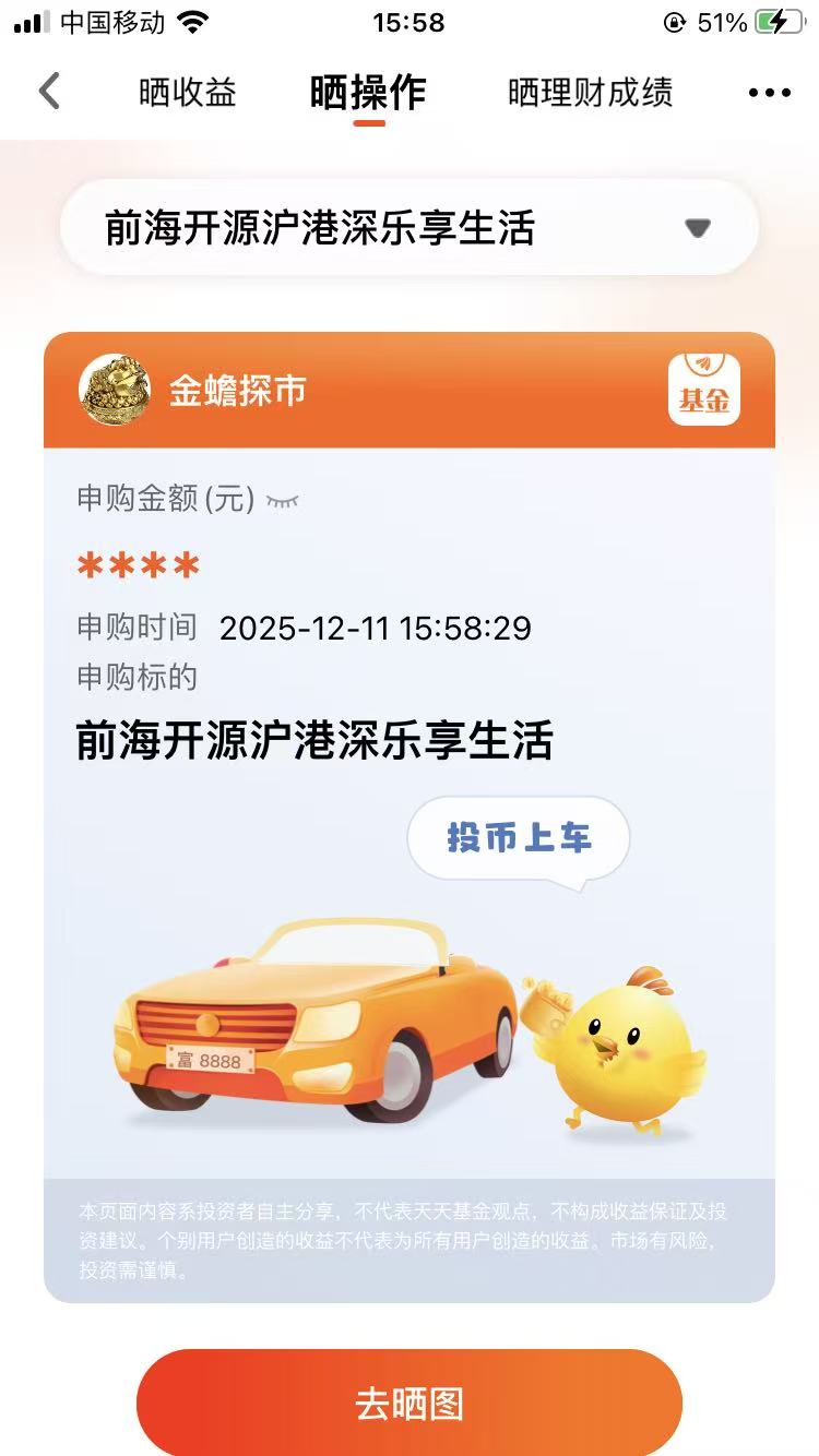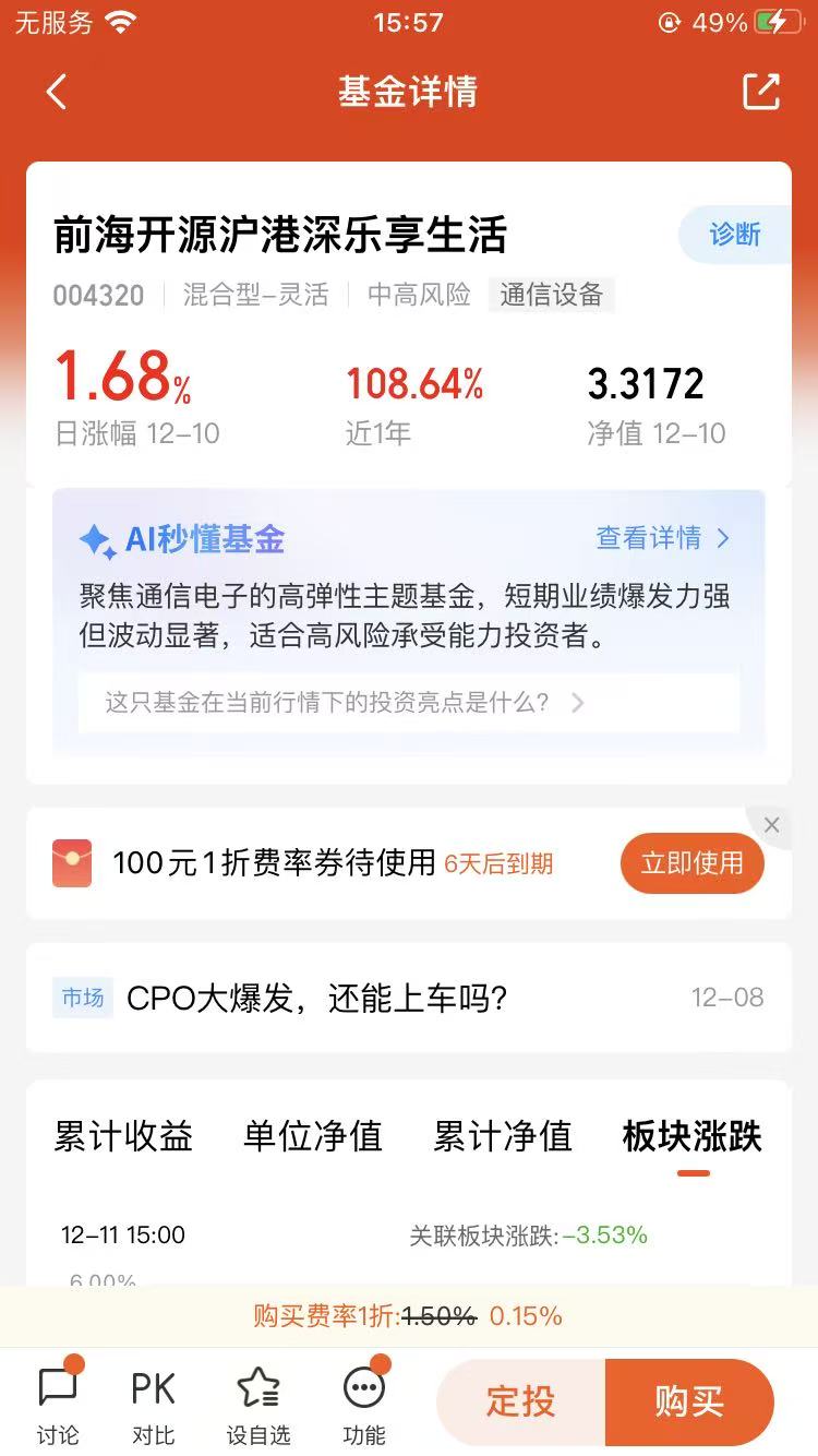 #晒操作##CPO、PCB大反攻!行情空间有多大?#关注 CPO 板块好一阵子了,看着光模块概念涨涨跌跌,一直没敢下手,怕追高被套。昨天刷行情时,想起之前听人说前海开源沪港深乐享生活布局了不少科技细分赛道,里面就有 CPO 相关标的,纠结了半小时,想着少买点试试水,就果断上车了!