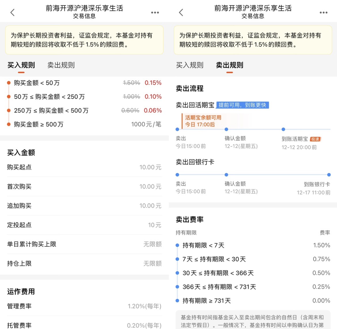 再说说它的交易规则,特别适合普通投资者。买入起点才10块钱,定投也能10块起,门槛特别低,不用攒一大笔钱才能买。赎回费虽然持有7天内要1.5%,但只要拿超过7天就降到0.75%,超过30天0.5%,其实是在鼓励长期持有,避免频繁交易。我之前买过那种赎回费很高的基金,稍微动一下就亏钱,这只基金的费率设计很合理,既保护了长期投资者,又给短期操作留了点空间。