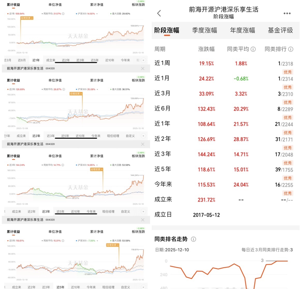 那么,话又说回来,作为一个普通基金投资者,该如何去参与像CPO这样的优质赛道呢?在这里,我向各位小伙伴们隆重推荐一一一前海开源沪港深乐享生活基金,真正实现一基在手,投资无忧!我为啥这么看好前海开源沪港深乐享生活这只基金?说真的,不是看它涨得猛就跟风,是实实在在从业绩、持仓、经理、逻辑这几块扒透了才敢这么说。