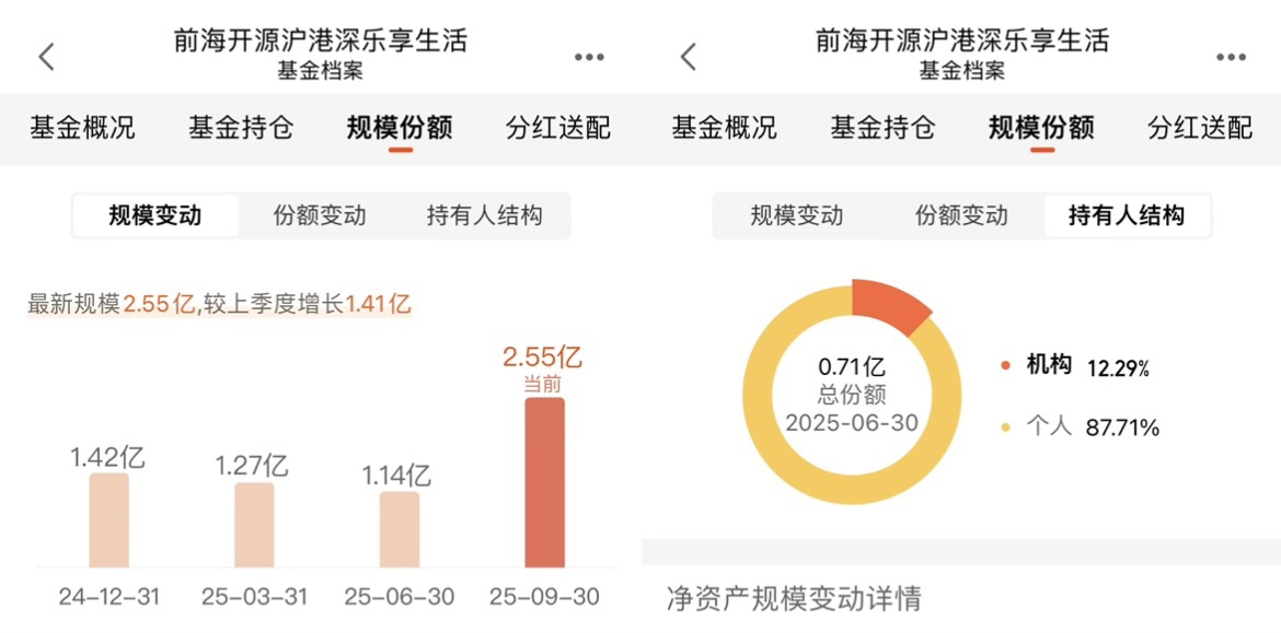 还有个细节特别打动我,这只基金规模才2.55亿。可能有人觉得规模小不好,但我反而觉得这是优势。规模小的基金调仓更灵活,不会因为买太多某只股票被市场盯上,也不会因为卖的时候砸盘。你看那些几百亿规模的基金,买个小票都能把股价拉起来,卖的时候更是费劲,收益自然被稀释了。这只基金规模小,刚好能在科技赛道里“船小好调头”,比如CPO龙头中际旭创,它能直接买到9.15%的仓位,要是规模大了,根本买不到这么高的占比,收益肯定打折扣。而且它最近规模从1.14亿涨到2.55亿,说明有聪明钱在往里进,但还没到“臃肿”的地步,现在入手刚好能跟上节奏。而且,机构持有占比也不少,这就足以证明本基金的优秀,不然,机构是不会看上眼的。跟着机构走,准没错!!!