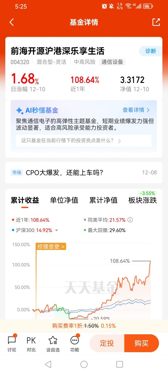 抓准CPO风口,坚定配置$前海开源沪港深乐享生活$ !