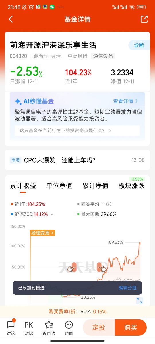 展望未来,CPO赛道的狂飙之路或许不会一帆风顺,但技术革新的浪潮与产业升级的趋势不可逆转。随着AI算力需求的持续释放、技术迭代的不断推进以及国产替代的加速落地,CPO行业有望进入长达3-5年的高景气周期。对于前海开源沪港深乐享生活的投资者而言,此刻布局CPO赛道,本质上是布局中国科技产业从“跟随”到“引领”的历史进程,是把握算力革命时代的核心机遇。