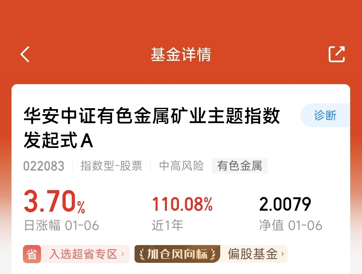 100%纯有色不掺假$华安中证有色金属矿业主题指数发起式A$近1年翻倍,0折申购