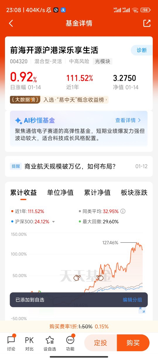 如今,回顾这段投资经历,我深感前海开源沪港深乐享生活这只基金为我提供了把握CPO赛道机遇的绝佳平台。它不仅让我分享到了科技发展的丰硕成果,更让我学会了在市场波动中保持理性、坚定信念。