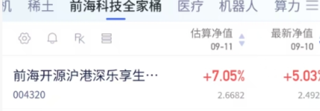 最近科技好火啊涨的太猛了,咔咔就是干,今天$前海开源沪港深乐享生活$又预估七个点