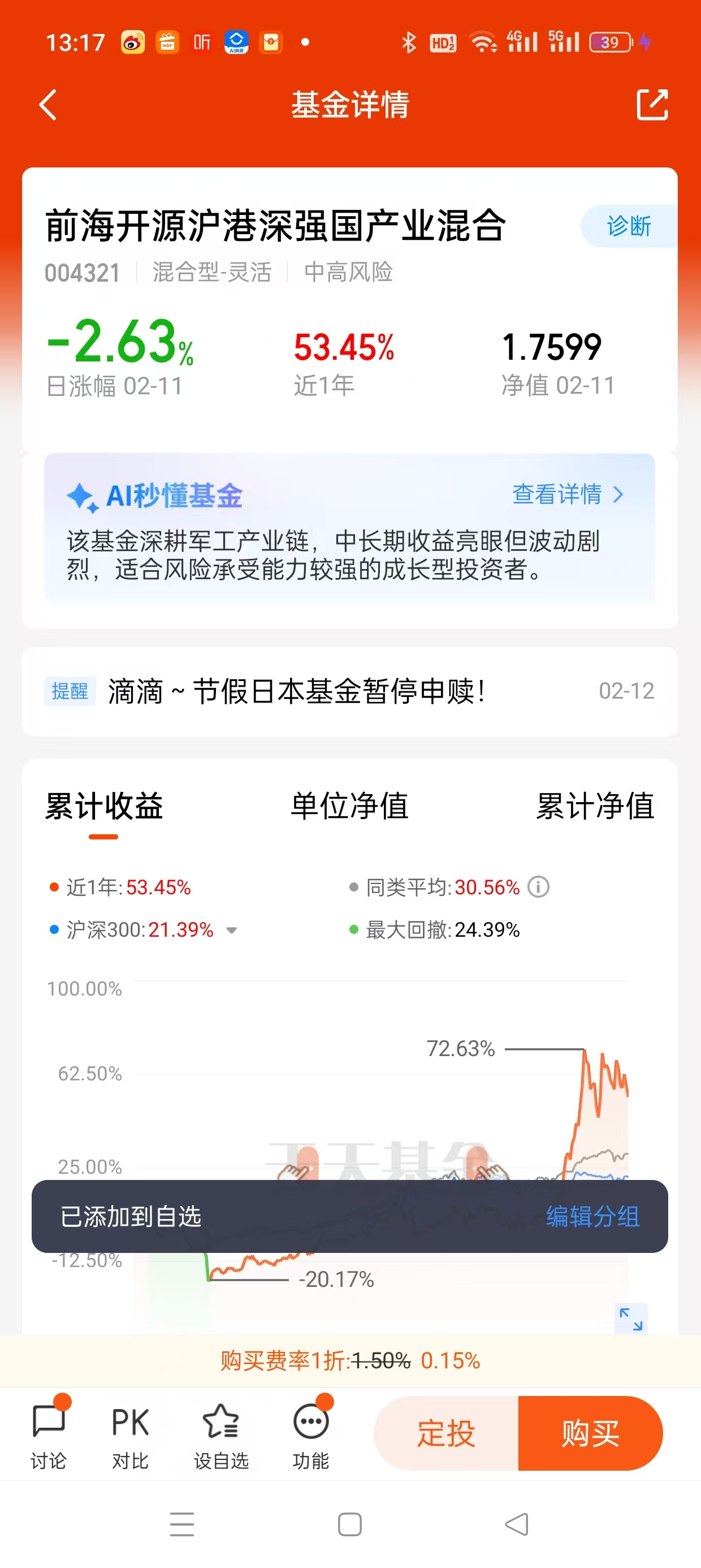 我的选择:借道基金布局 考虑到个股选择难度大、波动剧烈,我倾向于通过主题基金布局。前海开源沪港深强国产业混合(004321)是个不错的选择,基金经理魏淳在四季报中明确表示重点配置商业航天,前十大重仓股中航天电子、中国卫星等核心标的合计占比超30%,近一年涨幅53.45%,既抓住了赛道贝塔,又有一定的选股阿尔法。这种"专业的人做专业的事"的方式,比我自己去追概念股要踏实得多。 2026年是"十五五"开局之年,也是商业航天从"量变"到"质变"的关键转折。全球太空竞赛已经明牌,中美都在抢跑,频轨资源先到先得,近地轨道最多容纳约17.5万颗卫星,目前各国申报总量早已超限。这场竞赛没有退路,只有前进。站在当下,商业航天的政策红利、技术突破、资本涌入、应用爆发四重共振,大概率是未来十年最硬核的黄金赛道。与其观望,不如拥抱这场星辰大海的盛宴。