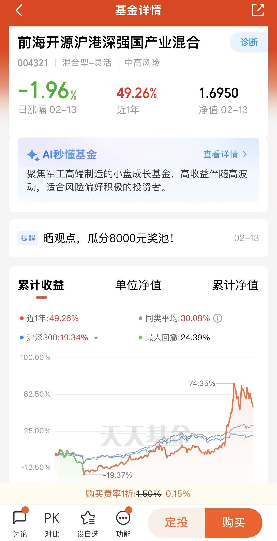 1、前海开源明星基金经理魏淳女士的前海开源沪港深强国产业混合(004321)重点布局国防军工、有色金属、汽车等高景气赛道,契合“十五五”规划中的高端制造升级方向,前十大重仓股航天电子、西部材料、超捷股份、中国卫星、臻镭科技、中国卫通等与商业航天国产替代的卫星制造、卫星发生等产业链高度契合,极具业绩爆发弹性。前海开源沪港深强国产业混合(004321)“近6月”阶段涨幅高达41.95%,远超同期沪深300指数的11.58%,在2306只同类基金中排名高居第172位。