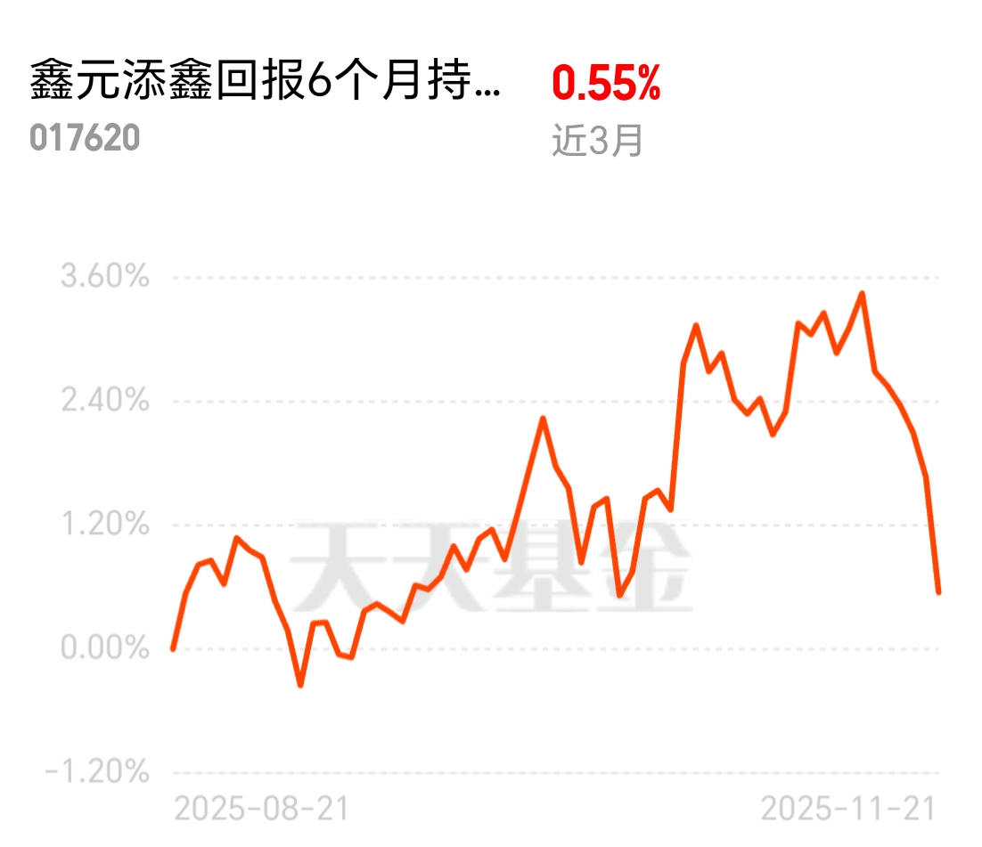 $景顺长城景泰纯利债券C$ $天弘弘利债券A$ $国泰金龙债券A$ 当下投资市场更看重长期稳定收益,短期投机越来越难行得通。鑫元添鑫回报6个月持有期混合C顺应趋势,近3个月业绩有0.55%,虽然不算暴涨但胜在稳健,6个月持有期能让投资更有规划,稳稳朝着收益目标走。