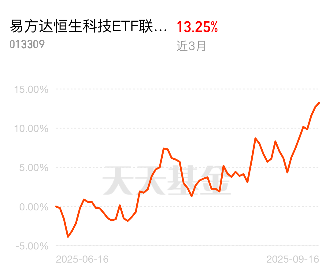 最近恒生科技板块挺火,科技股的涨势很明显。易方达恒生科技C近一周涨4.13%、三