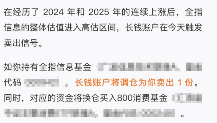 某投顾进行了调仓,卖出信息,买入消费。正所谓,贱买贵卖,思路是没错的。与AI与信息与数字化相关的板块,近一年涨得太猛了,涨过100%的基金,已有不少。也许会继续涨,但卖出大抵是没错的。
