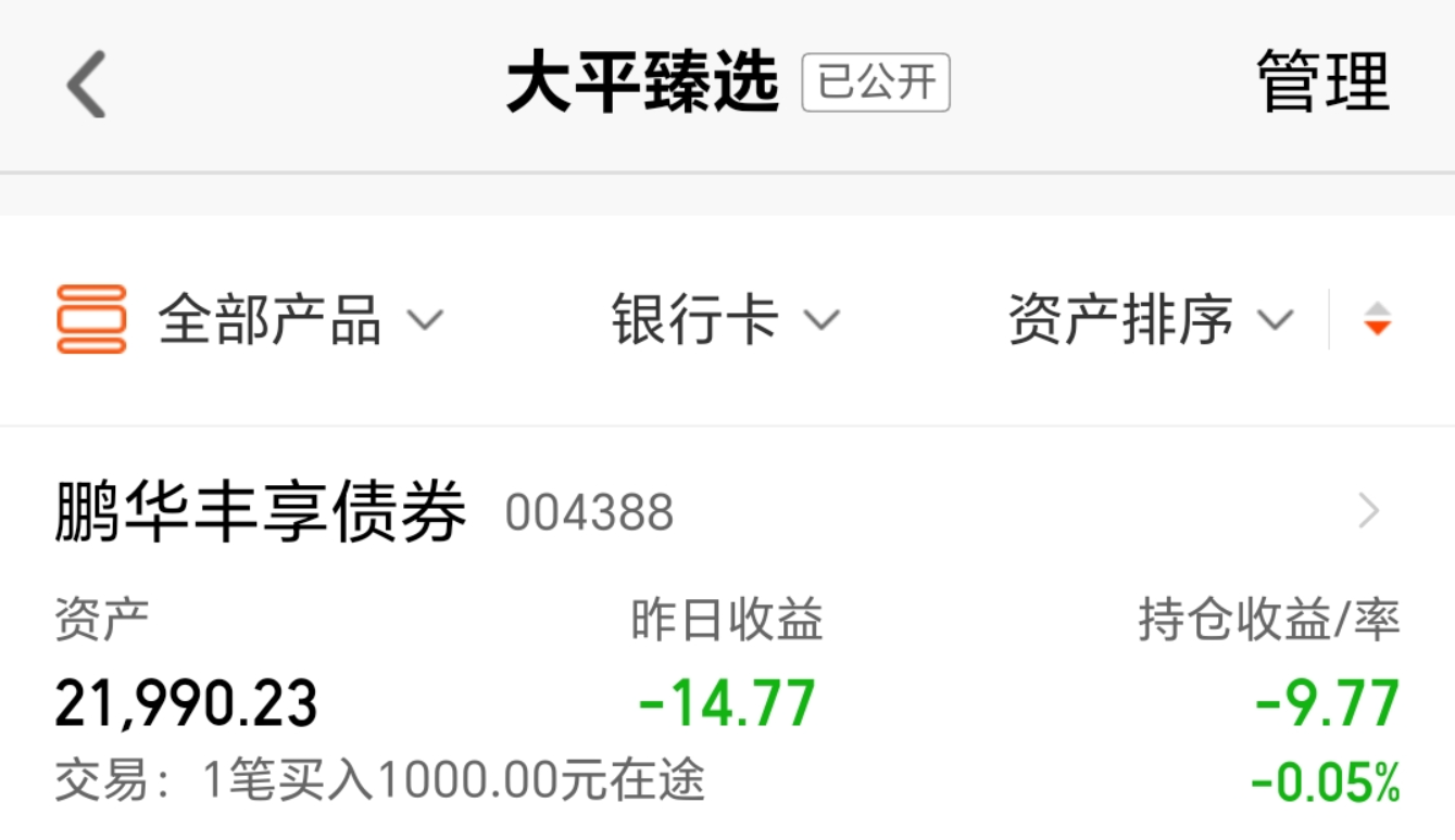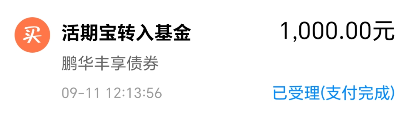 今天我买入$鹏华丰享债券(OTCFUND|004388)$1000块钱。