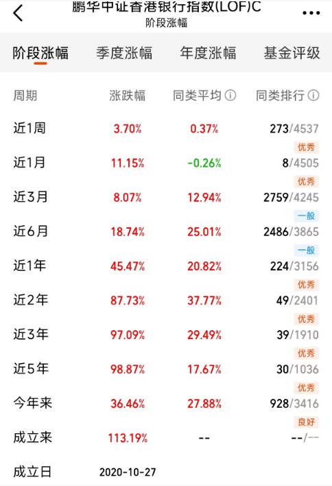 投资本来就是持久战,要学会看淡眼前的涨跌。$鹏华香港银行指数(LOF)C$(010365)自成立以来累计涨幅显著,更难得的是,它连续多个季度和年度均实现正收益,这种“穿越周期”的韧性,在波动的市场中值得关注。对于投资者,这意味着一份安心,可以考虑将其作为投资选择。长期方向没错,剩下的就是坚持了。#段永平:投资茅台不需要太看宏观环境#