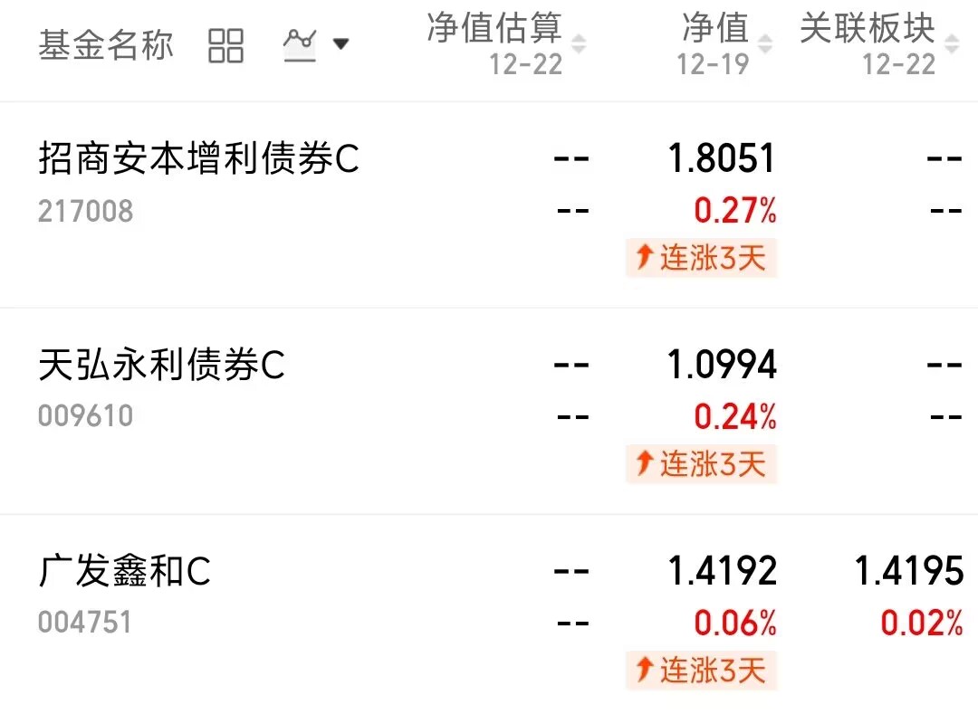 偏债基金主要靠债券利息赚钱,收益基础很扎实,同时还能靠少量股票仓位博取一点额外收益。行情好的时候能多赚点,行情差的时候也能靠债券撑住,长期持有下来,收益比货币基金高不少,$招商安本增利债券C(OTCFUND|217008)$上周五收了27个蛋。