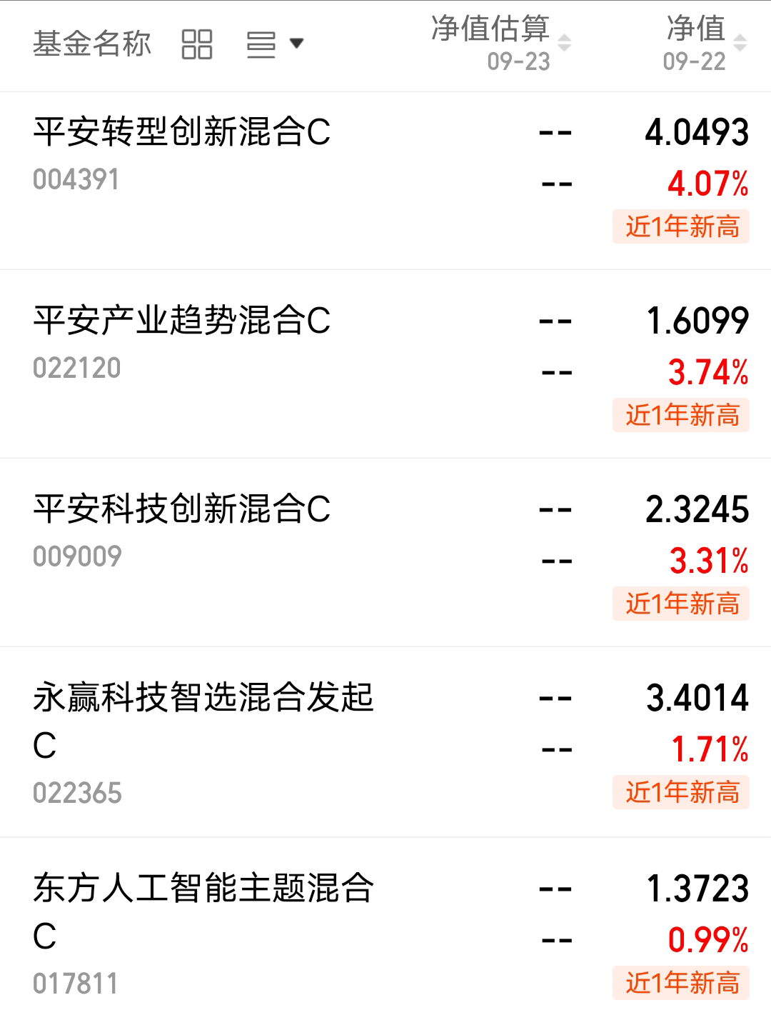 $平安转型创新混合C$ 昨晚涨4.07%真不错啊