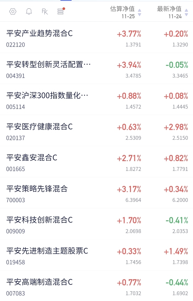 $平安产业趋势混合C$ 估值大涨3.77