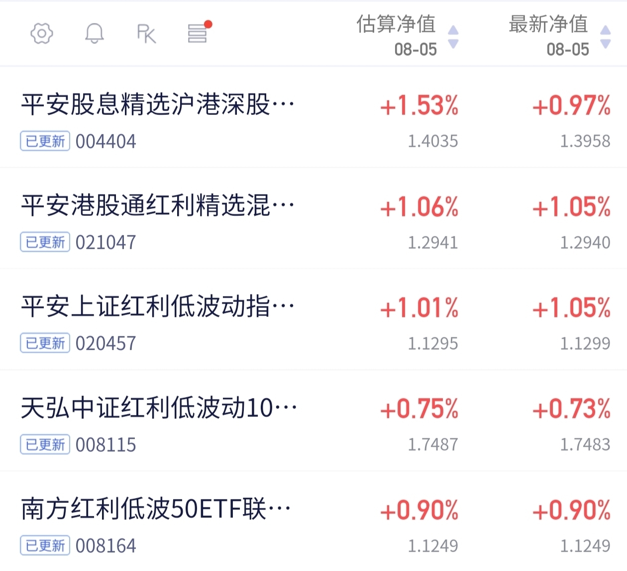 $平安上证红利低波动指数C$ 净值+1.05%,太稳了!