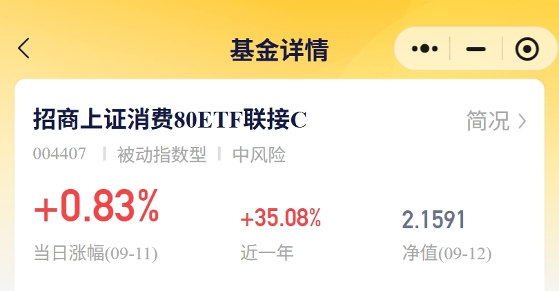 基金表现的也是非常的优秀。近一个月上涨了8.32%,近一年的收益率高达35.08%,盈利能力强。基金精准的跟踪消费80指数,上涨弹性大,爆发力强。基金前十大权重股涵盖了贵州茅台、恒瑞医药、药明康德等细分领域龙头,兼顾稳定性与成长性。避免了单一行业波动的风险,同时能享受不同行业带来的发展机遇。随着目前市场情绪的高涨,大量的资金顺周期流入了消费板块。中秋、国庆双节临近,消费板块迎来季节性的催化,将迎来新一轮的上涨。长期持有,投资性价比高。期待后期收益!