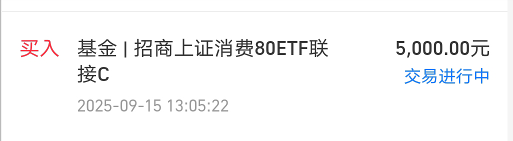 今天上车5000这只$招商上证消费80ETF联接C$ ,近来表现波动较小,抗跌能力也不错,整体风格稳健,上证消费80重仓都是优质企业,如贵州茅台、恒瑞医药、伊利股份、上汽集团等,涵盖白酒,食品饮料,医药,汽车,家电等热门领域,具有较强的盈利能力和持续的成长性,潜力较大,历史业绩近1个月涨8.32%,近1年涨35.08%,无论短期或长期业绩皆稳定,跑赢同类排名领先,近来政策也在刺激消费,临近双节和十五五规划,消费行情有望迎来机遇,逢低布局一笔!
