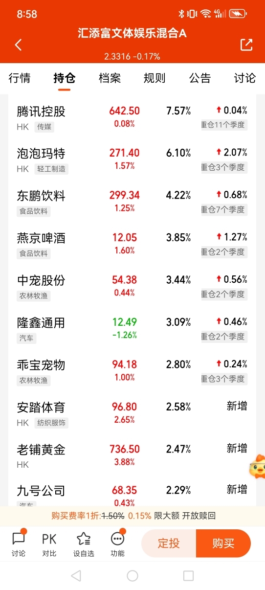 今天十大重仓股只有一个是绿的,TNND的今天净值居然是绿的。