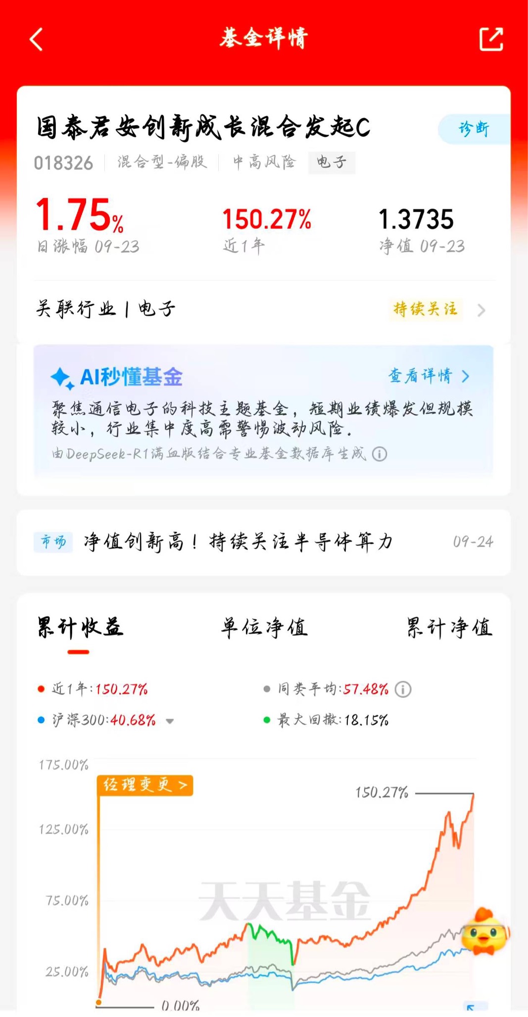 这只基持有人亲测:一年150.27%收益根本不用操作!今日起飞再证实力,经理风控严守18%回撤底线真省心。