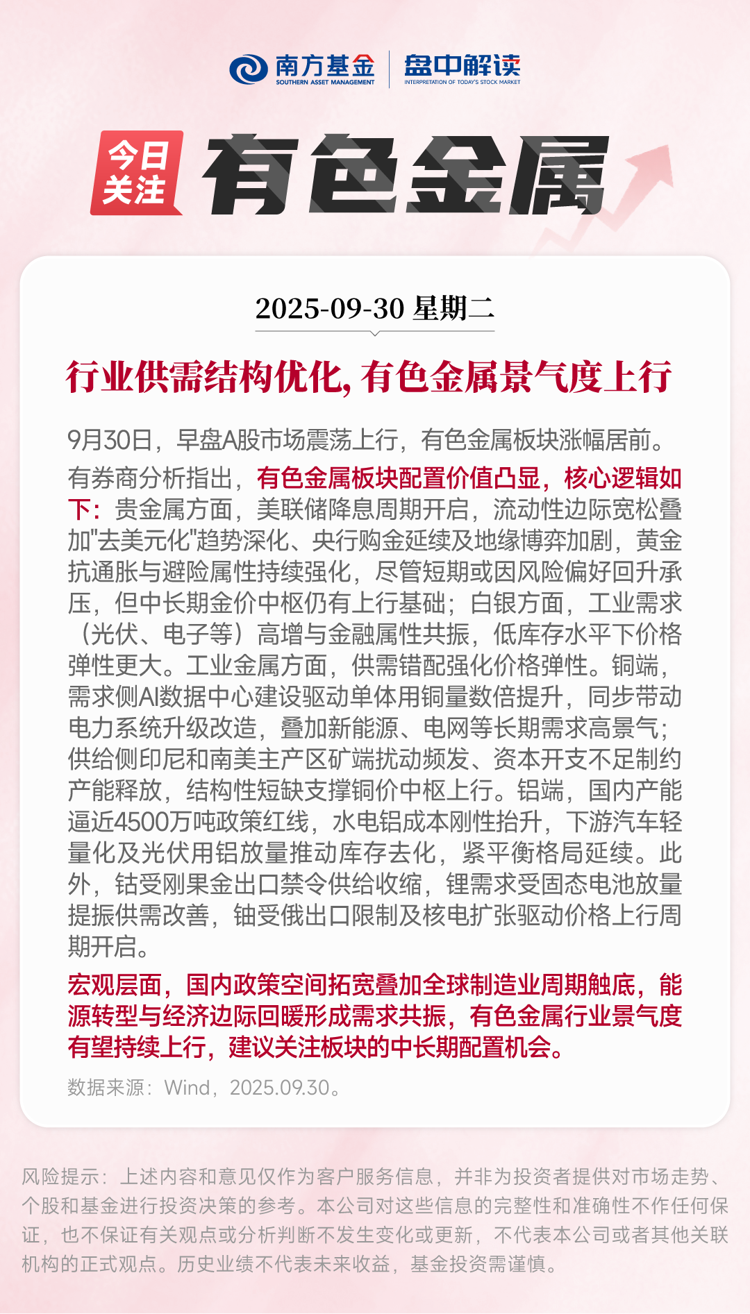 【盘中点评】行业供需结构优化,有色金属景气度上行