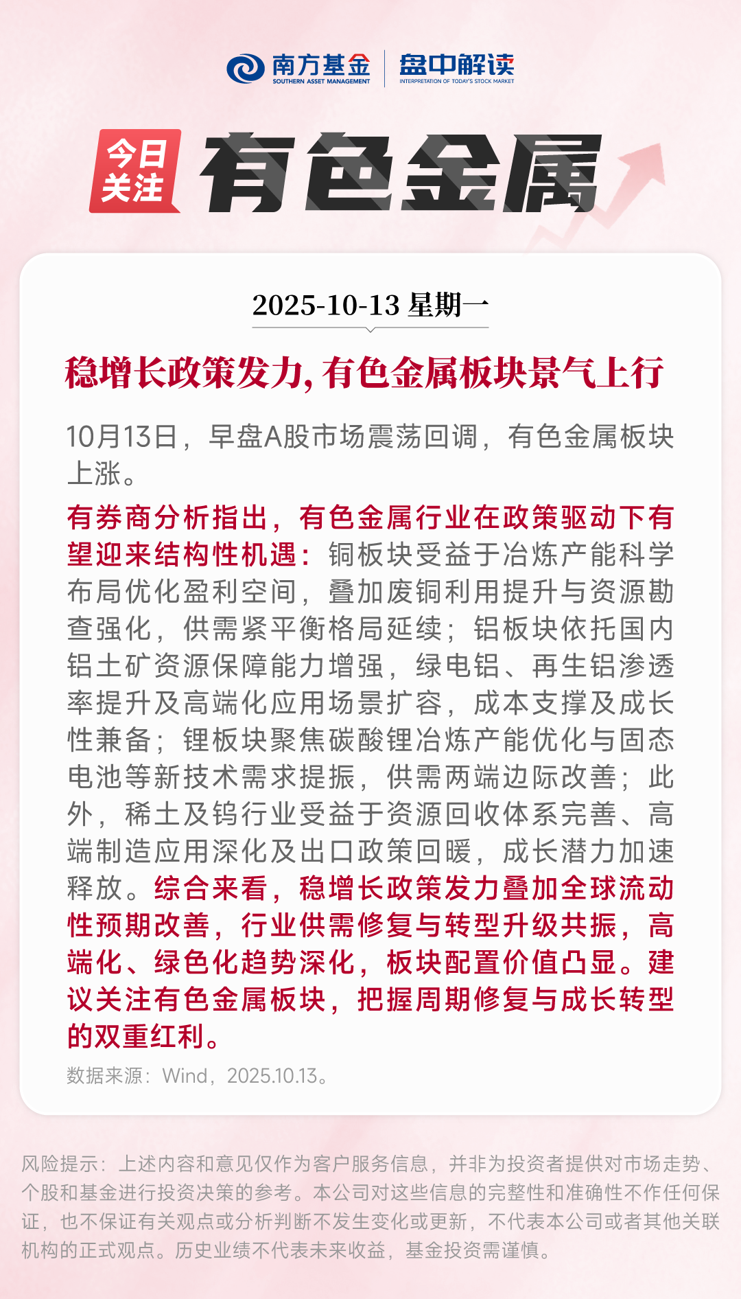 【盘中解读】稳增长政策发力,有色金属板块景气上行