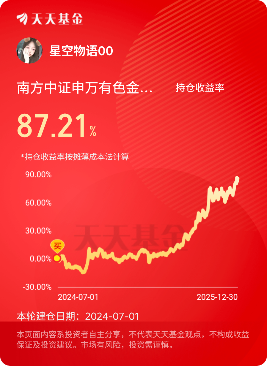 有色板块趋势越来越好,未来潜力很足,我得长期拿着#晒收益#