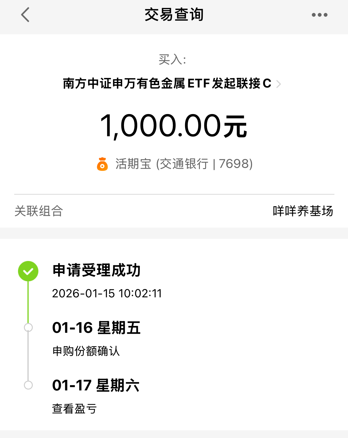 我加1000元 $南方中证申万有色金属ETF发起联接C(OTCFUND|004433)$(004433)