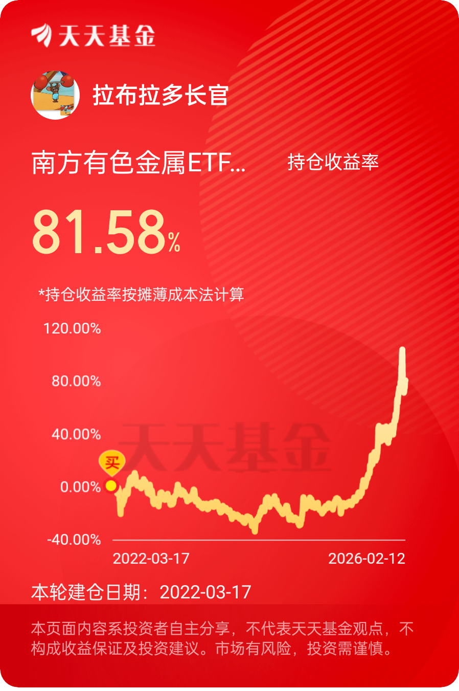 现在大盘调整,正是分批布局这基金的好时候,耐心点#晒收益#