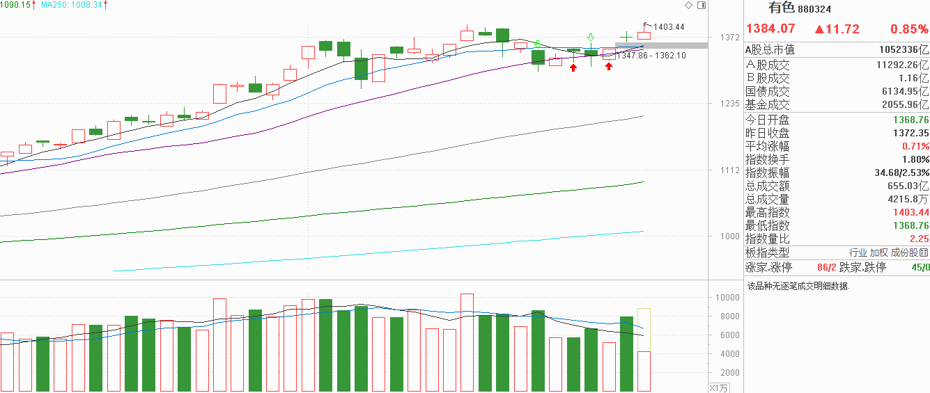 家人们,有色金属昨天那简直让人心脏狂跳!高开后窄幅震荡,留下一个比较大的跳空缺口,主要原因是铜金属出现巨大的供应缺口,今天有色金属继续中阳反弹创新高,我认为是正常的,市场的供求关系已经定下来了,铜价上行在中期内不会改变,对有色金属来说就是一个质变级的利好。昨天说了有色金属可以更积极一些,不能突破前高就在冲高回落时止盈,可以突破前高就是新行情的启动信号,越早跟随主力就能越早享受突破的红利。眼下有色金属均线是粘合的,出现跳空缺口后不回补反而继续上行,均线就会转向发散,对有色金属上行是很有利的。只要资金还在流入,现在再看5天线的回踩时间还很早,有色金属继续走高的概率是很大的。