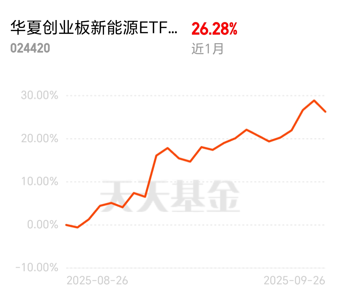 伙伴们前几天加仓没,这基今天超反弹,上涨4%+,近一个月收益已经有26.28%了,多拿点持仓过节$华夏创业板新能源ETF发起式联接C$