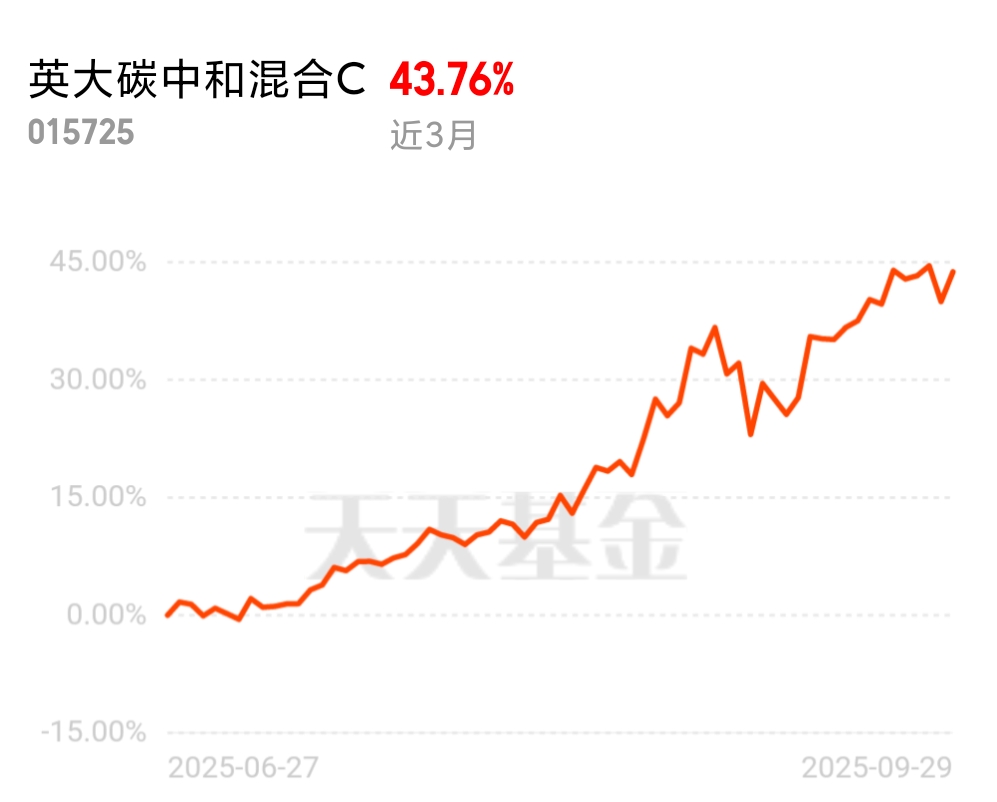 这基最近存在感太强!$英大碳中和混合C$近3个月收益43%,排名稳居前列~国庆前