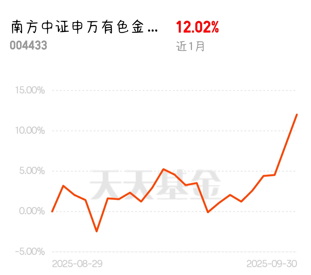 有色最近的涨幅很喜人啊,最直接的推手肯定是美联储降息,给机会话就来多加点好了$南方中证申万有色金属ETF发起联接C$
