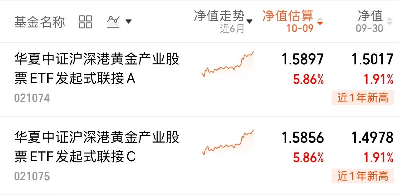 金价创历史新高,各大投行紧急上调目标价,$华夏中证沪深港黄金产业股票ETF发起式联接C$今天大涨超5%+,场内黄金股ETF(159562)最新规模24.09亿元,去年年底规模为3.22亿元,今年以来规模大增6.48倍