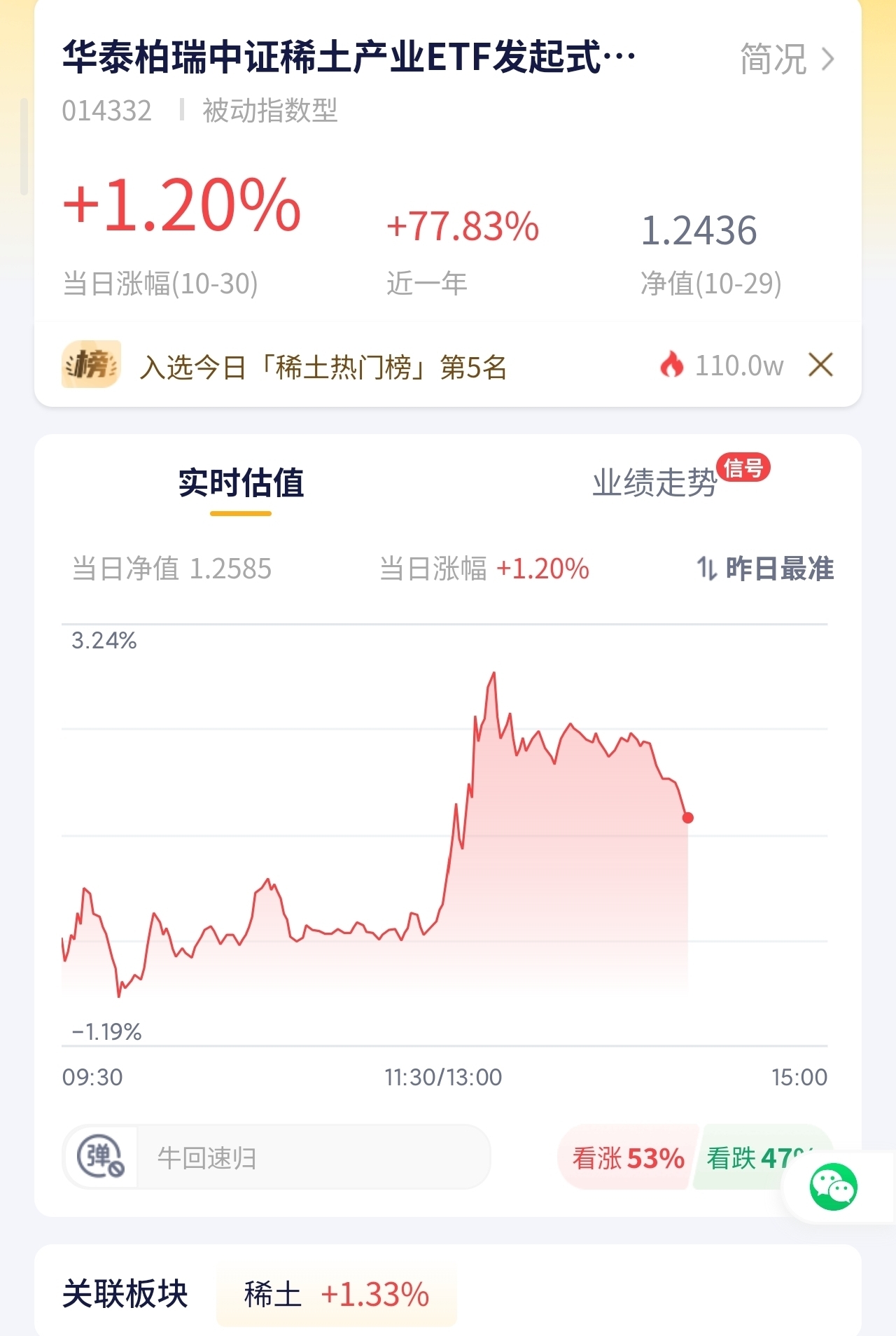 担心稀土回调?10月29日直接涨2.51%,指数冲去12099点!现在稀土是国家安全重点,新能源需求还在涨。不用自己盯个股,华泰柏瑞的稀土基跟紧行业,费率也划算,不过它是高风险基金,投资前得考虑清楚。$华泰柏瑞中证稀土产业ETF发起式联接C$