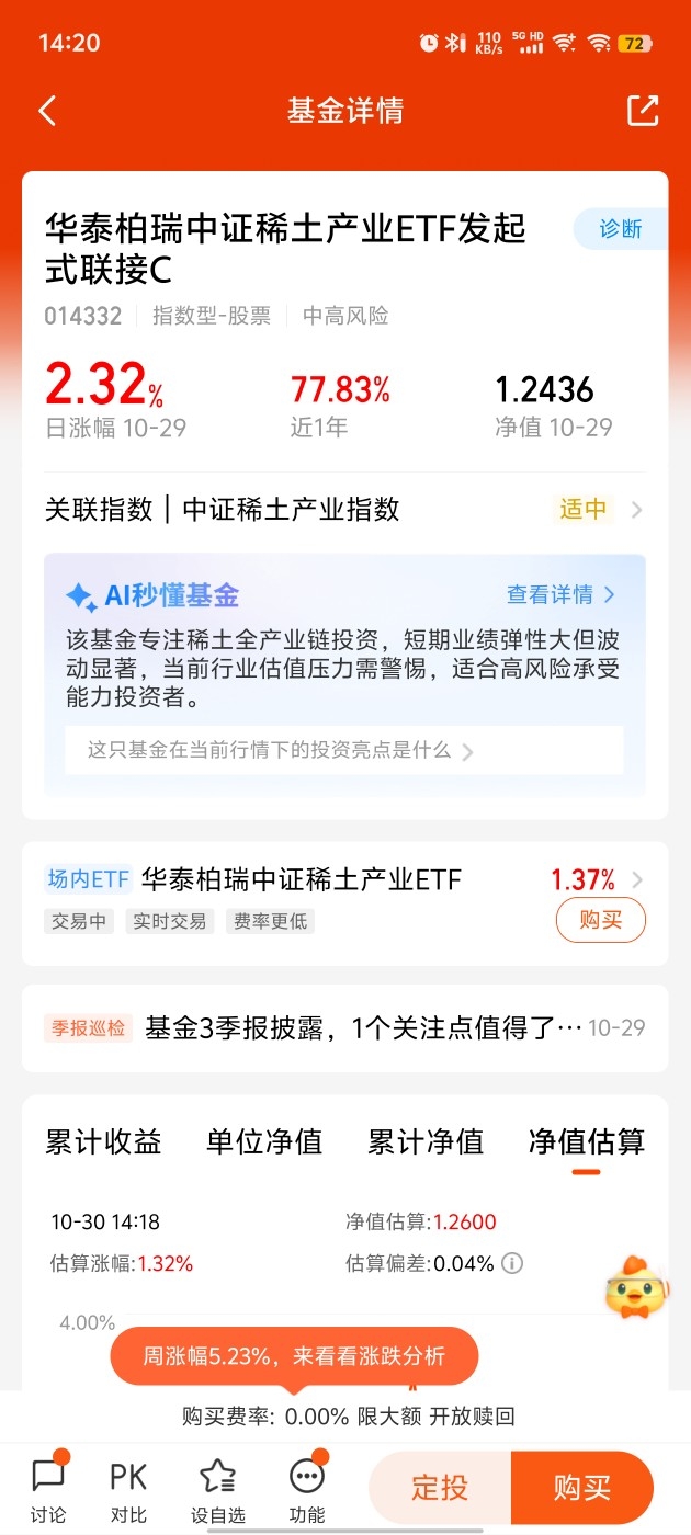 稀土行情彻底起飞了!今天看基金净值,稀土相关的产品又涨了不少,果然选对赛道比啥都