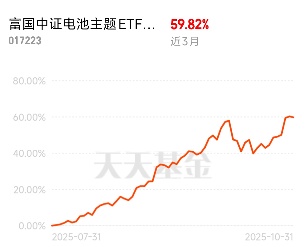 手里有南方中证申万有色金属ETF联接C,顺手配了点富国中证电池主题ETF联接C都是新能源车和储能这条线上的,电池这波6个月涨了77%,最近一个季度利润还猛增20%,拿稳了!