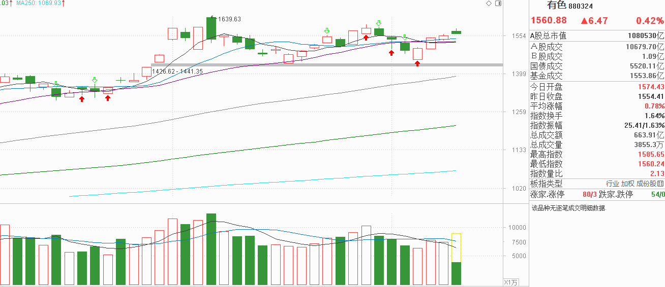 有色金属:四连阳穿越20日线,目标直指新高,能突破还是要回踩?
