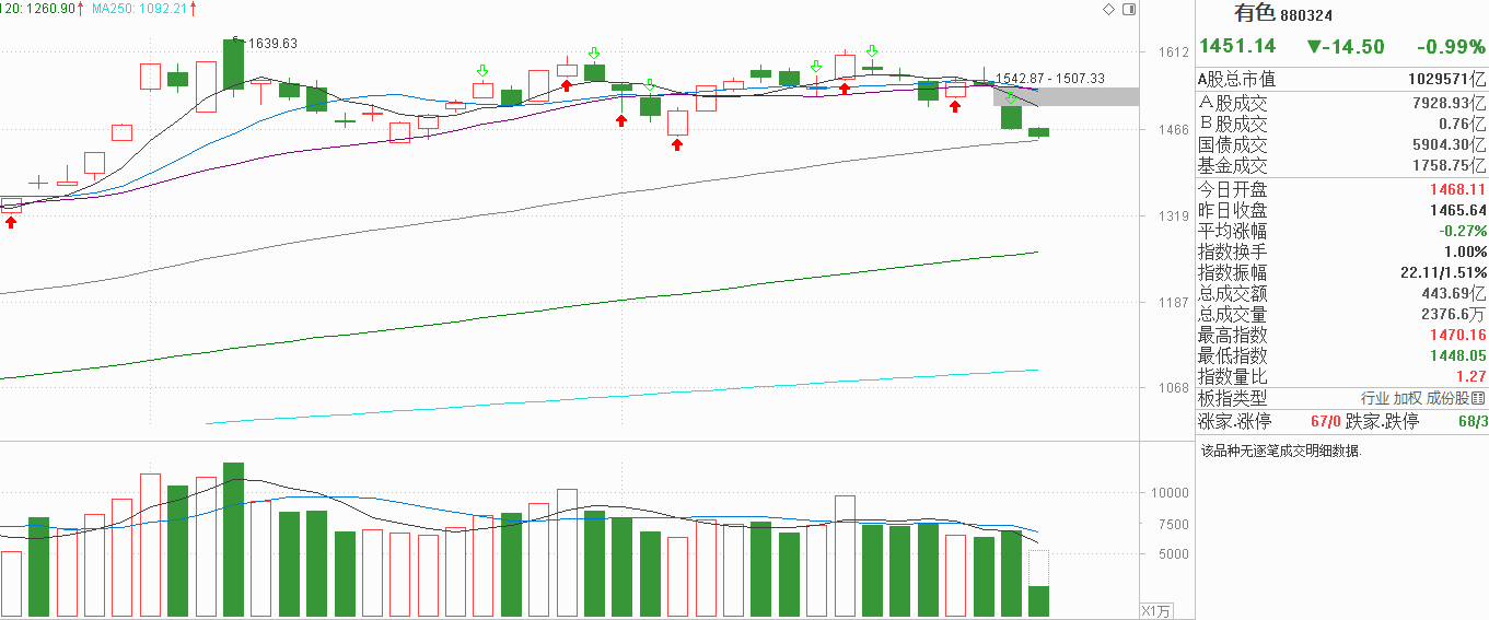 有色金属:冲高回落5天线失守!跳空缺口没补完,资金跑光了要怎办