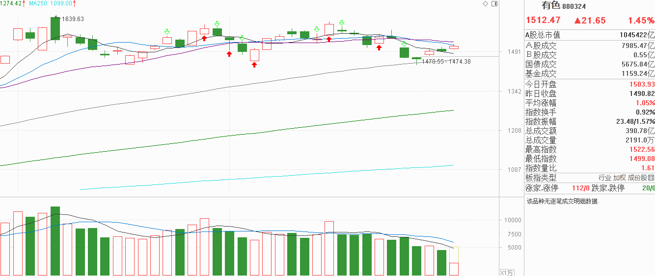 有色金属昨天高开低走假阴调整,但因为5天线是下行的,虽然并没有资金流入,但还是收复了5天线。今天有色金属又是高开,但反过来是走高的挑战10天线阻力,从阳线力度看本次回升力度明显不足,但连线调整后有色金属的抛压也不大,看成是9月30号至10月9号间大箱体内波动是没有问题的,此外,由于屡次准备突破无果,这一次有色金属探底60天线后回升,更多应该看成是技术修复,即反弹到位后就得落袋为安。目前有色金属离10月9号高点有一定距离,向上反抽依然有空间,基于当前是箱底向箱顶波动是短期看涨周期,我认为可以更积极一些。10天线、20天线在箱体震荡中的影响并不大,只要5天线收复了就是新支撑。这么弱的反弹可能不是一帆,下周有色金属能回踩5天线,或许还有一次逢低潜伏的好机会。