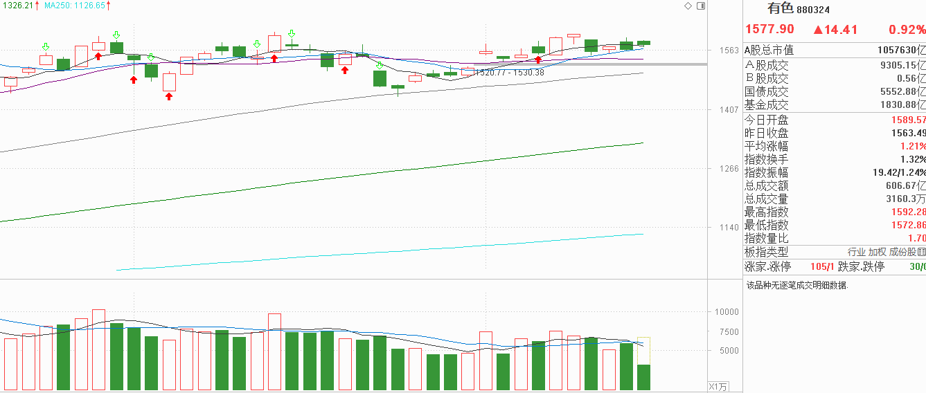 看看有色金属,昨天高开冲高后走低,并没有创12月8号的新高,原箱体依然有效,突破不了就向下回落是箱顶附近最见的走势,按理说周二、周四两次走弱,有色金属应该要走弱往下测试箱底了。但黄金、白银、碳酸锂、铜、锡都在反弹,有色金属今天又是高开在5天线上方,主力真要做行情连续两天高开总应该向上突破了吧?但今天有色依然是高开后走低,我不认为主力在这种时候还没有准备好突破,有没有一种可能,是主力已经跑光了,现在是量化主导的箱体震荡,所以每到箱顶都会受到明显的抛压,但有色金属的基本面是最强的,每天都是高开,只是散户力量没量化强被压回去?所以只要没有主力重新参与,就以量化特性看,有色金属这么好的利好都无法向上突破12月8号的箱顶,意味着还是箱顶止盈为好,那天真突破了量化无法控制,那天再重新进场看涨也是可以的。