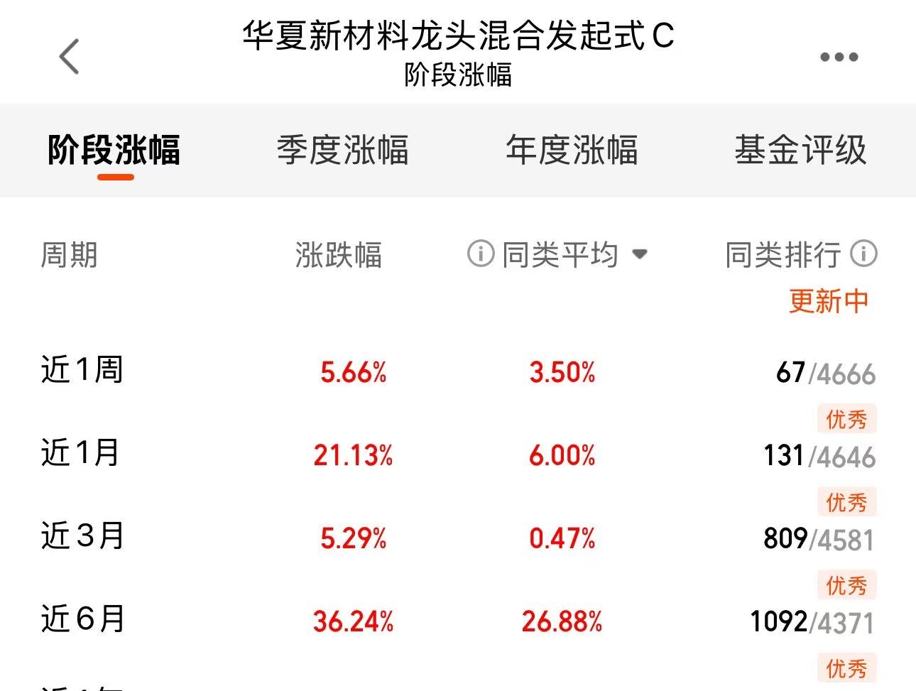 连红三天收益超11%,近一个月收益直冲21%+,同类排名优秀,论收益还是得看$华夏新材料龙头混合发起式C$,持仓聚焦AI新材料,弹性也足,看好这波上涨