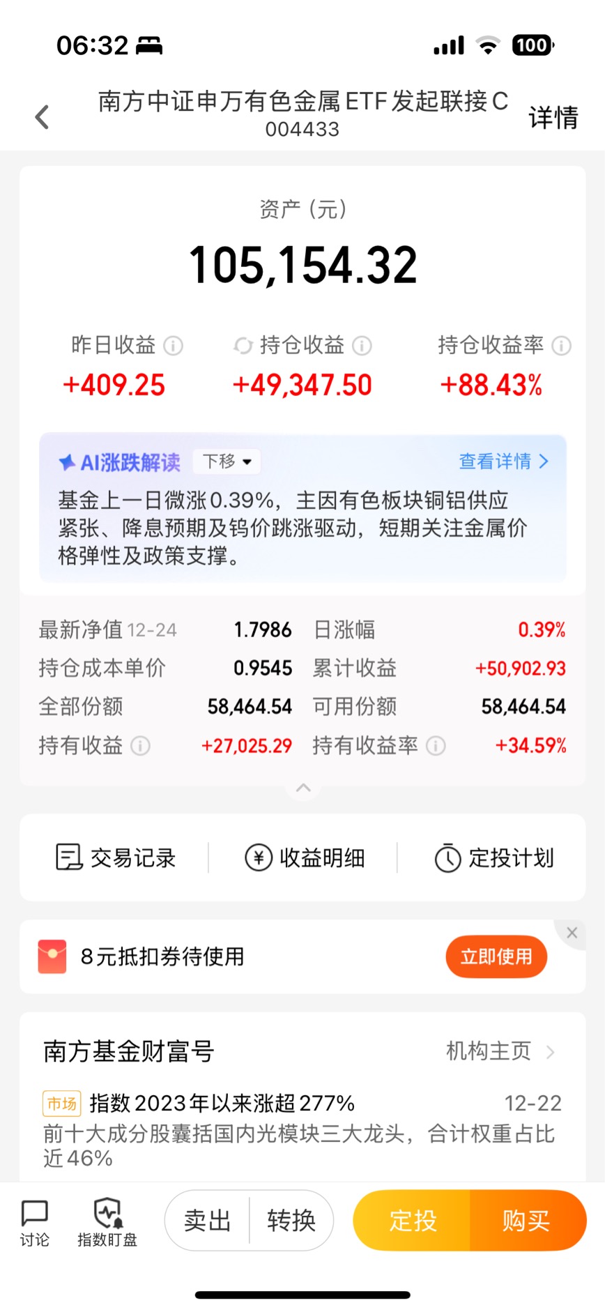 这是我持仓基金中最好的一个基金。12万一年赚了5万。同时买入的另外二个债券基金,觉得风险比这个股票基金小很多吧,结果二个债券基金跌出姥姥家了!踏对了风口有多重要啊!