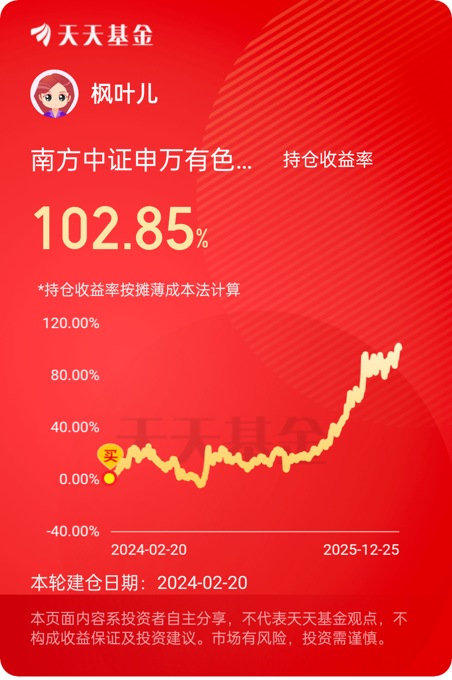 查了有色金属的价格走势,现在不算高,现在买,长期拿着了#晒收益#