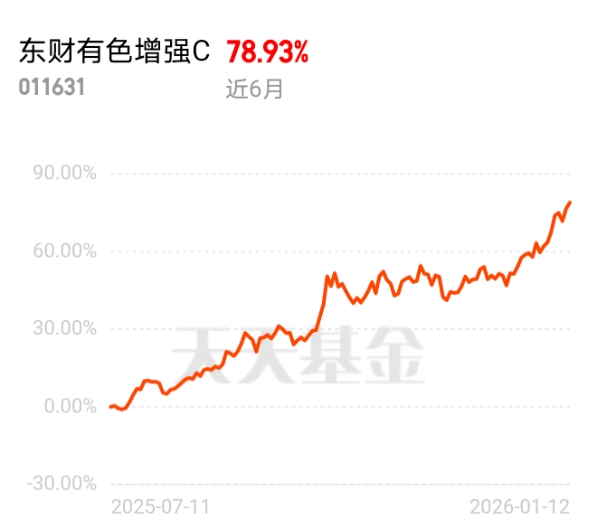 2026 年宽货币 + 弱复苏,有色板块弹性十足。有钱不赚非好汉,跑步转换到东财有色了,赚的更多,东财有色增强 C 近 6 月 78.93%,弹性行情赚更多。