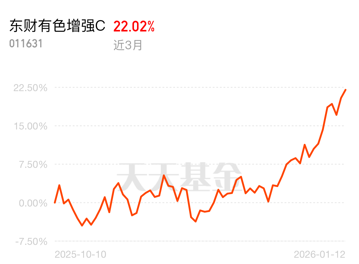 开年以来有色指数连涨不停,贵金属还在强势传导。东财有色增强C近3月22.02%,