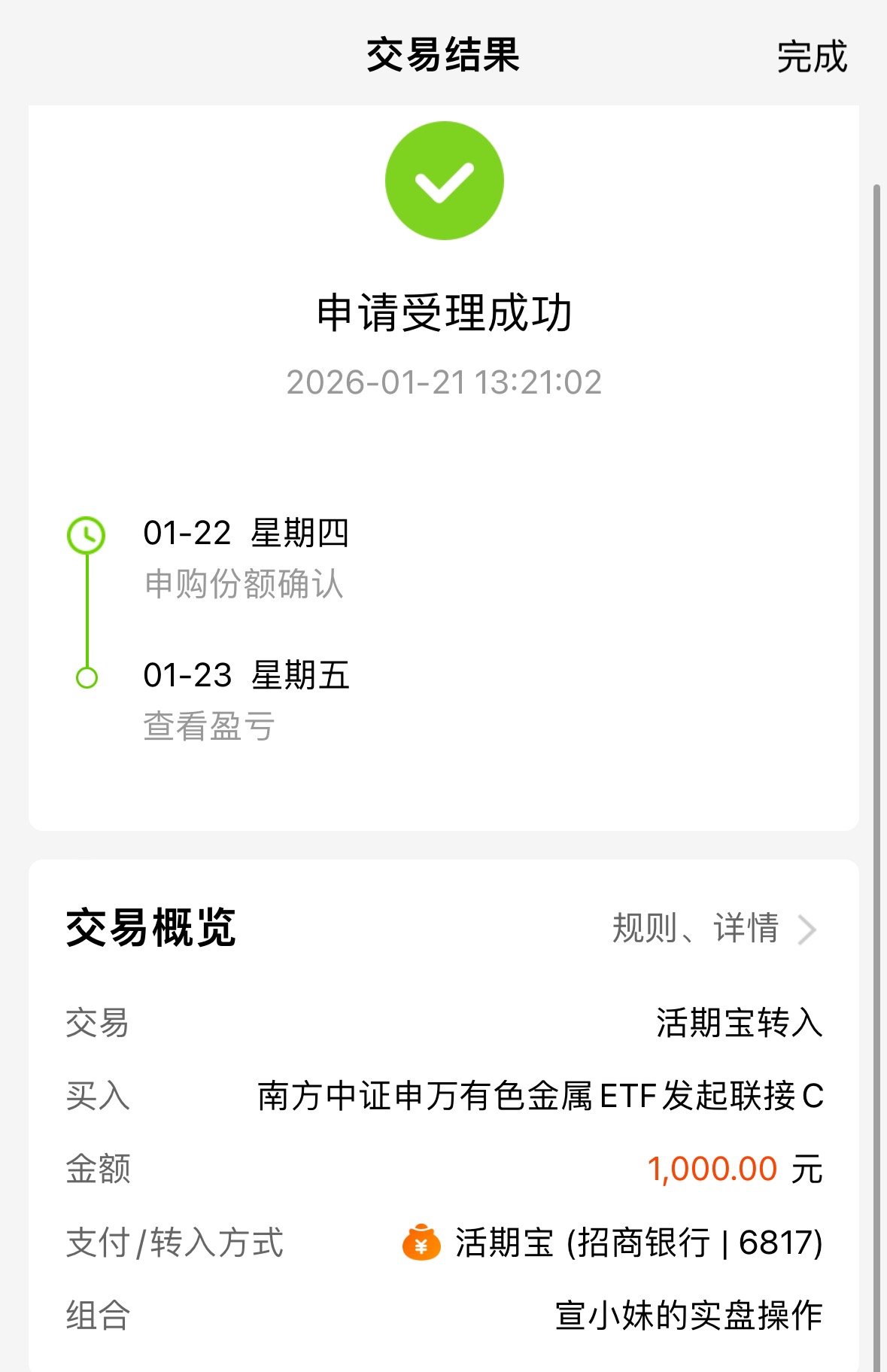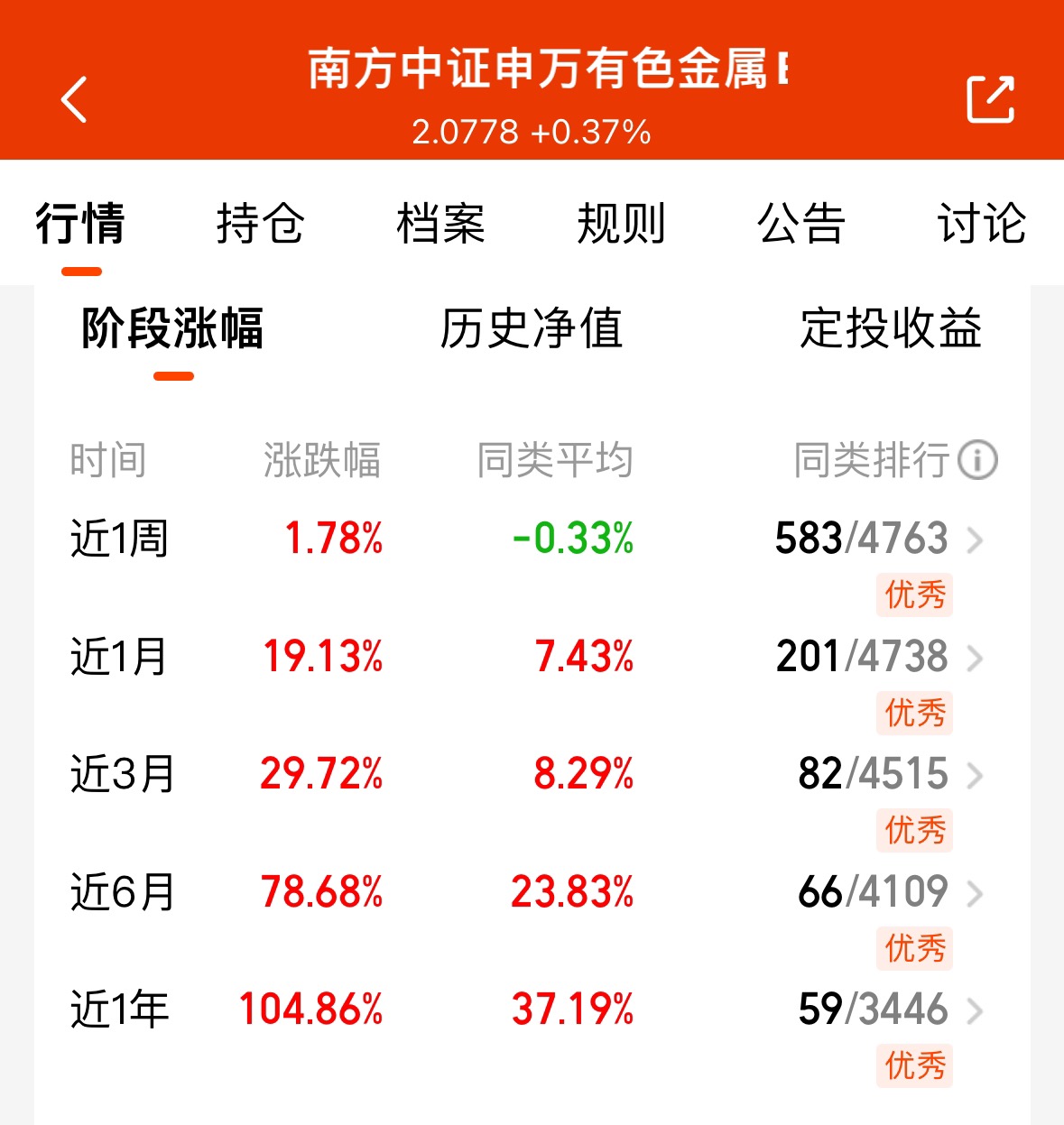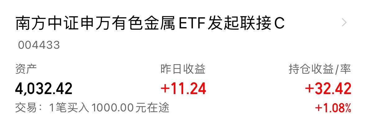 我今天续加了1000元持仓里的$南方中证申万有色金属ETF发起联接C$ ,目前持仓4000元。
