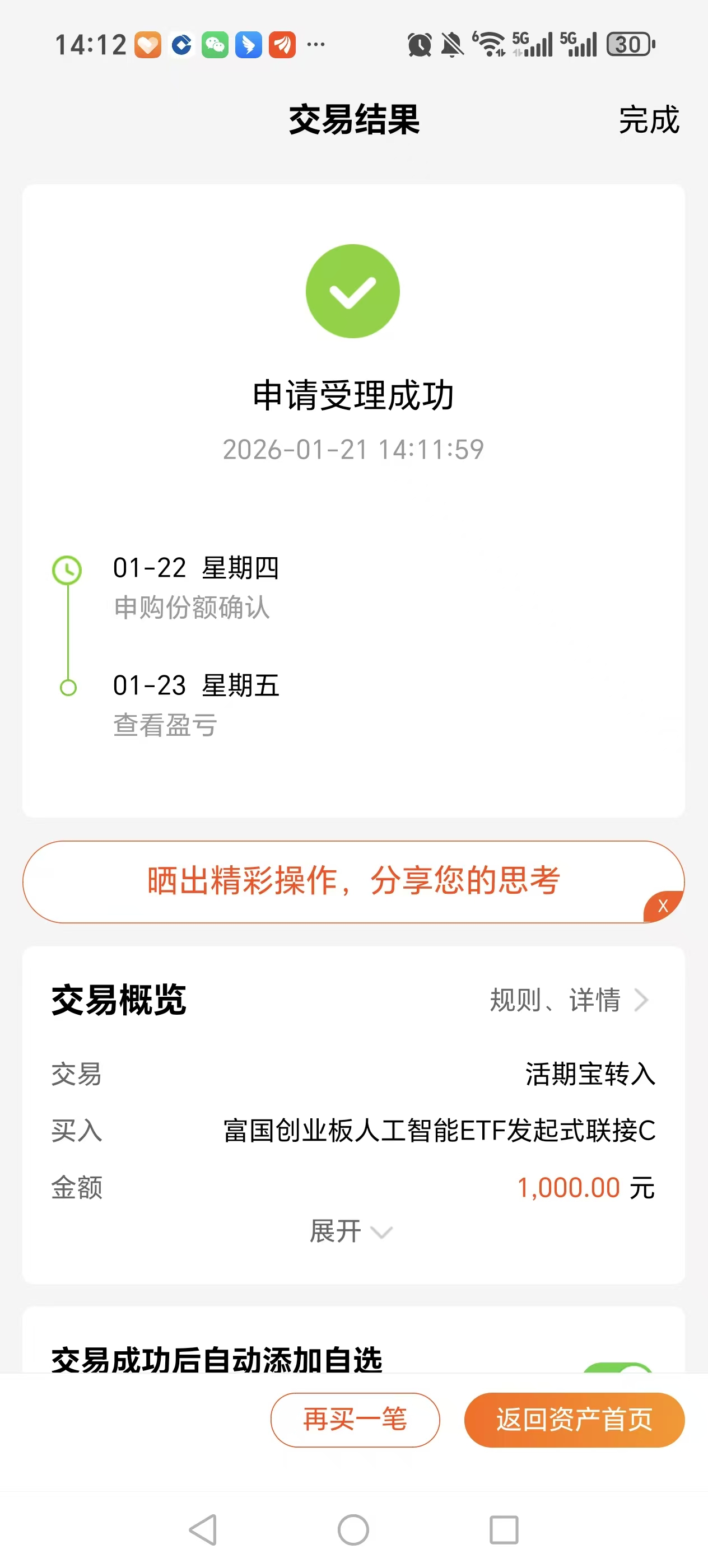 买入 $富国创业板人工智能ETF发起式联接C$ 1000元
