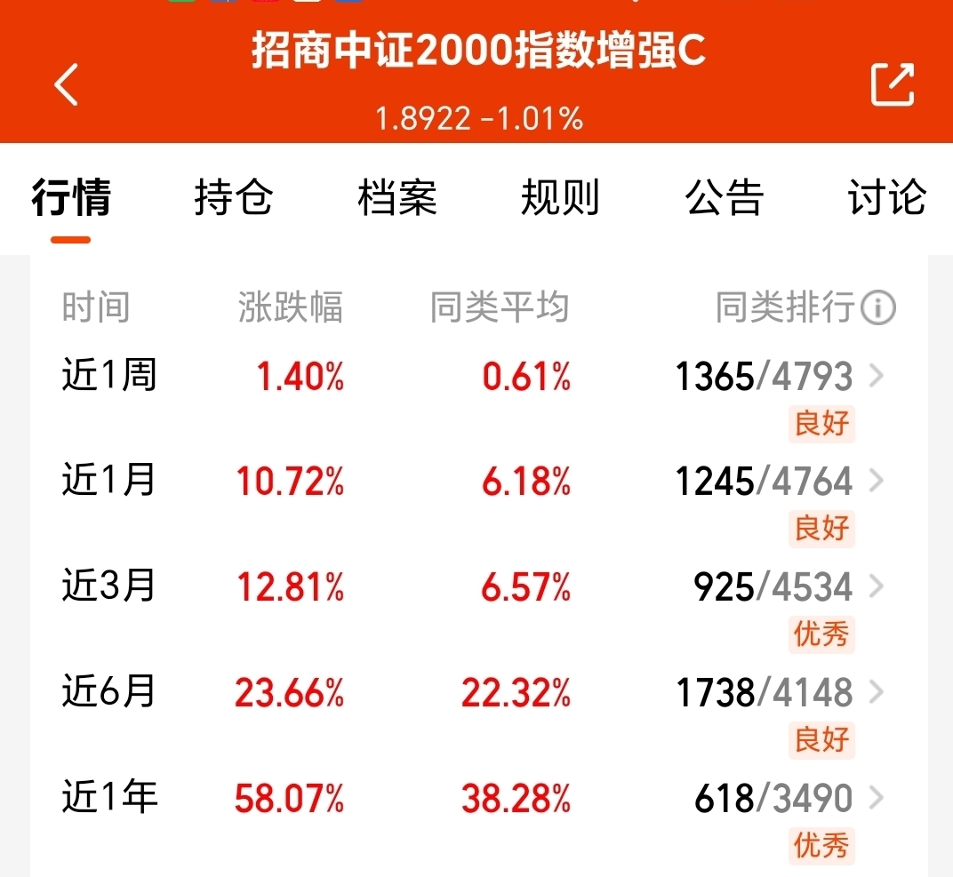 $招商中证2000指数增强C$ 近一个月已经涨超10%。
